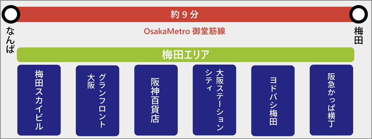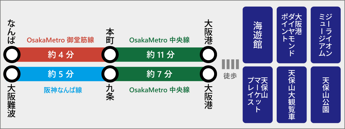 地下鉄四ツ橋線「なんば駅」31番出口より徒歩30秒。
