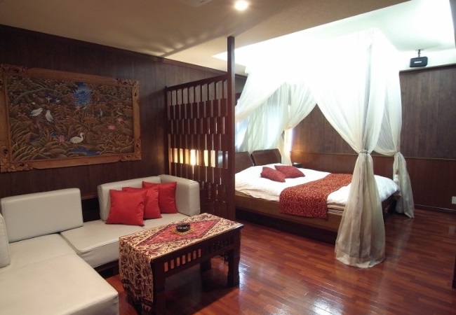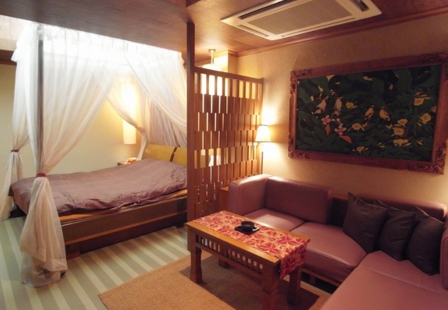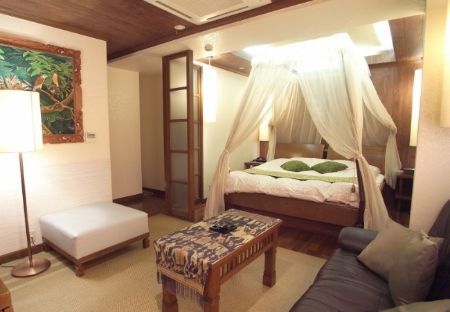 南国バリのリゾートルームをイメージしたお部屋をご用意しております。どうぞごゆっくり、おくつろぎくださいませ。